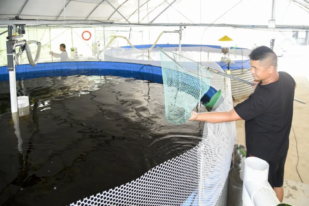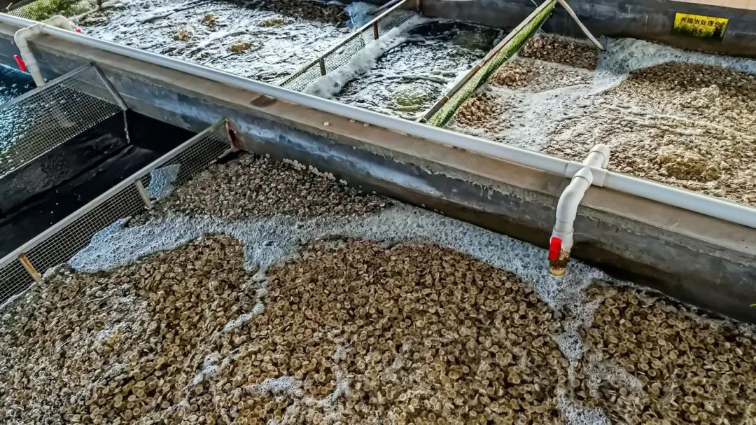 基地内设置全套水处理系统,通过调配人工海水并搭载智能化设备监测调控养殖环境,将氨氮、亚硝酸盐和硝酸盐等有害物质浓度控制在安全范围内以实现循环水养殖。